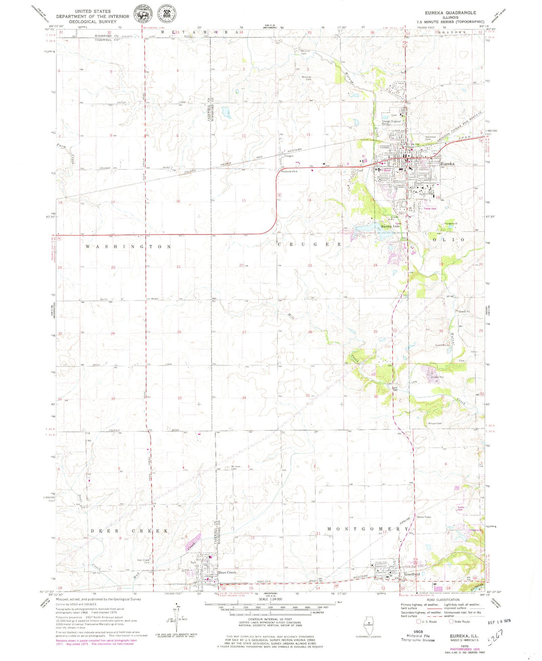 Classic USGS Eureka Illinois 7.5’x7.5′ Topo Map โ MyTopo Map Store
