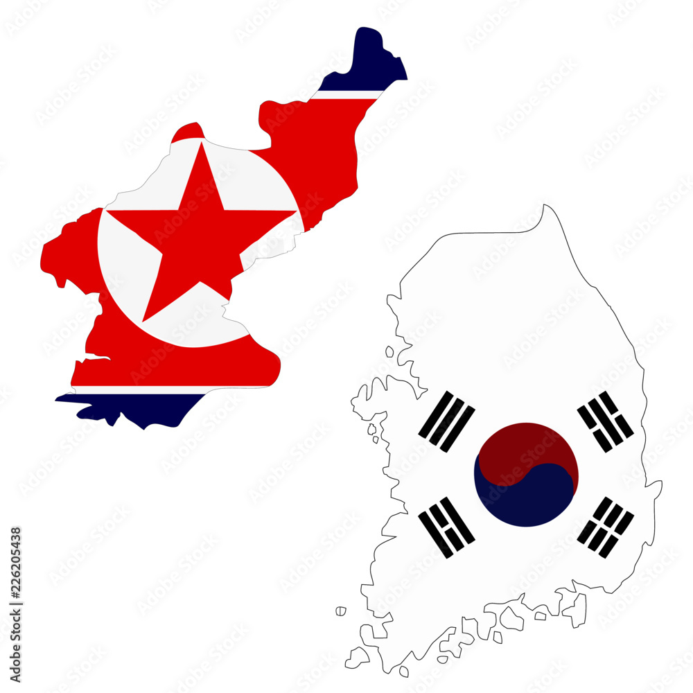North Korea South Korea Map Flag Stock Illustration 1076718347